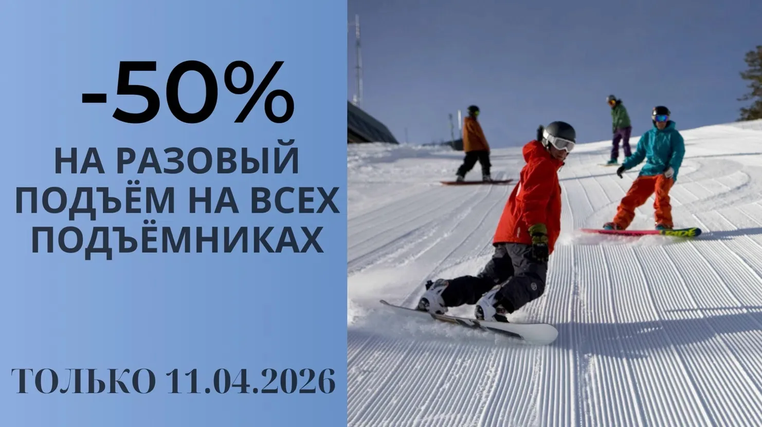 Только 11 апреля действует уникальное предложение – скидка 50% на все разовые подъёмы!