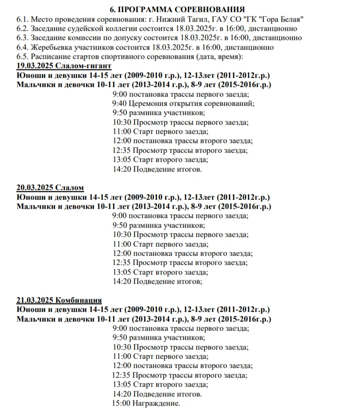 К соревнованиям «Кубок «Горы Белой» допускаются спортсмены в возрастных группах (в соответствии с ЕВСК):