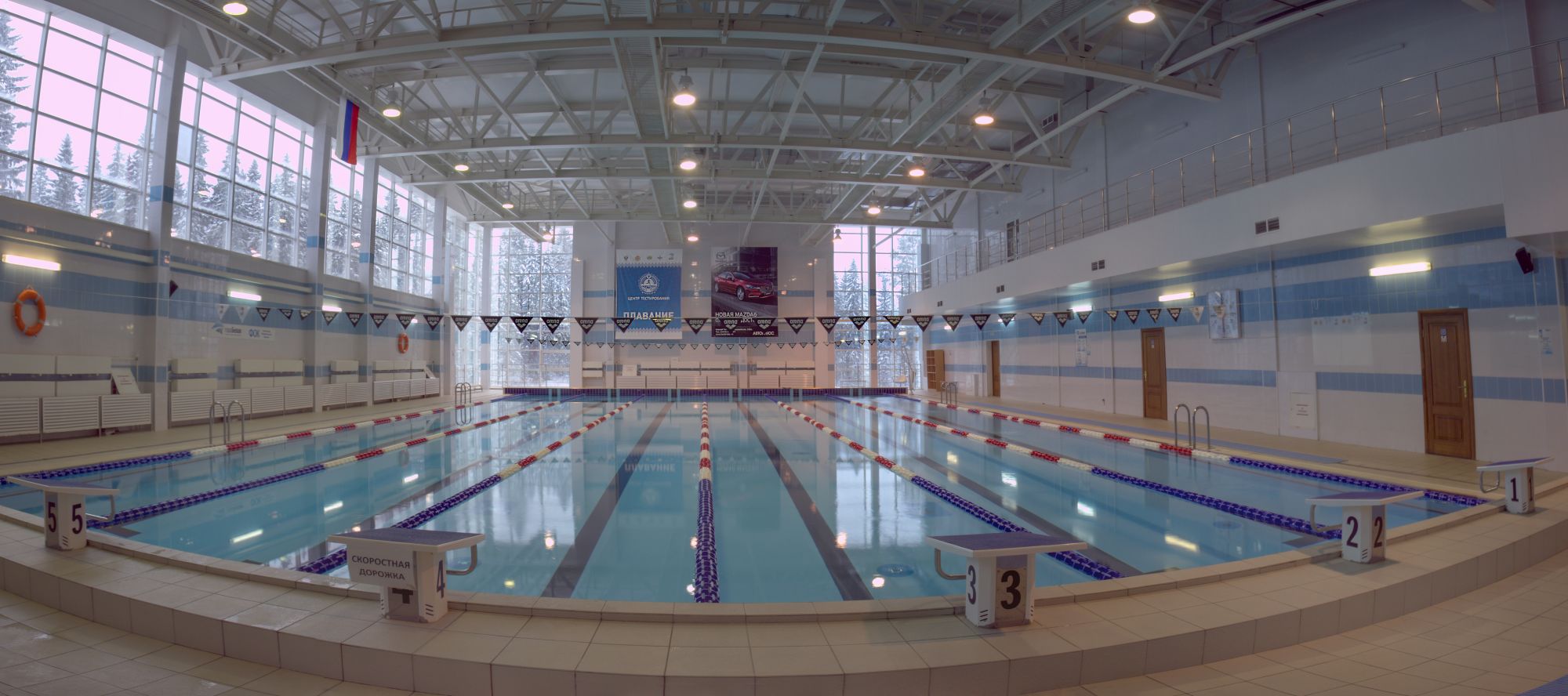 Бассейн из 6 дорожек по 25 метров. Максимальная глубина 1.8 м. Минимальная 1.2 м.