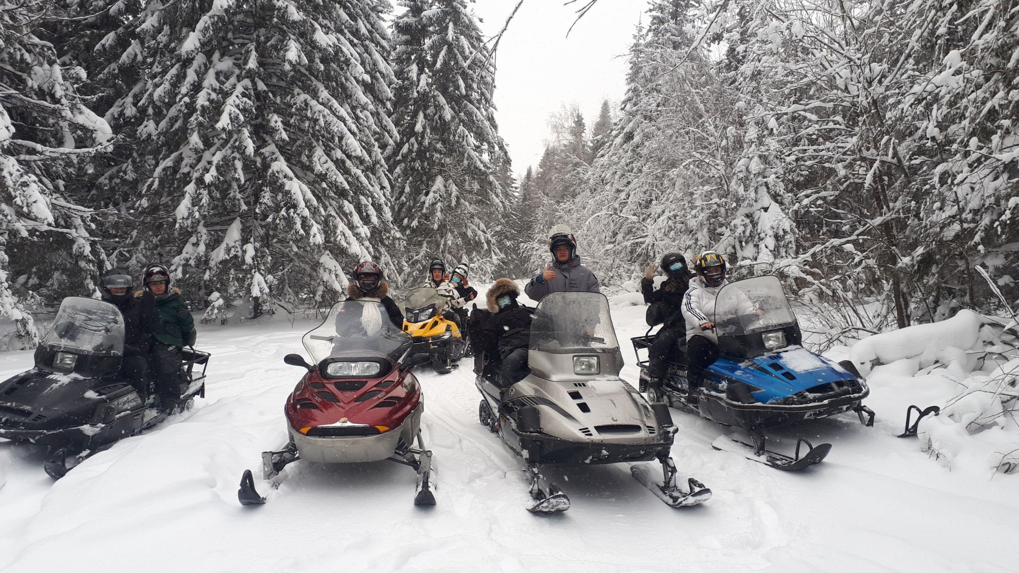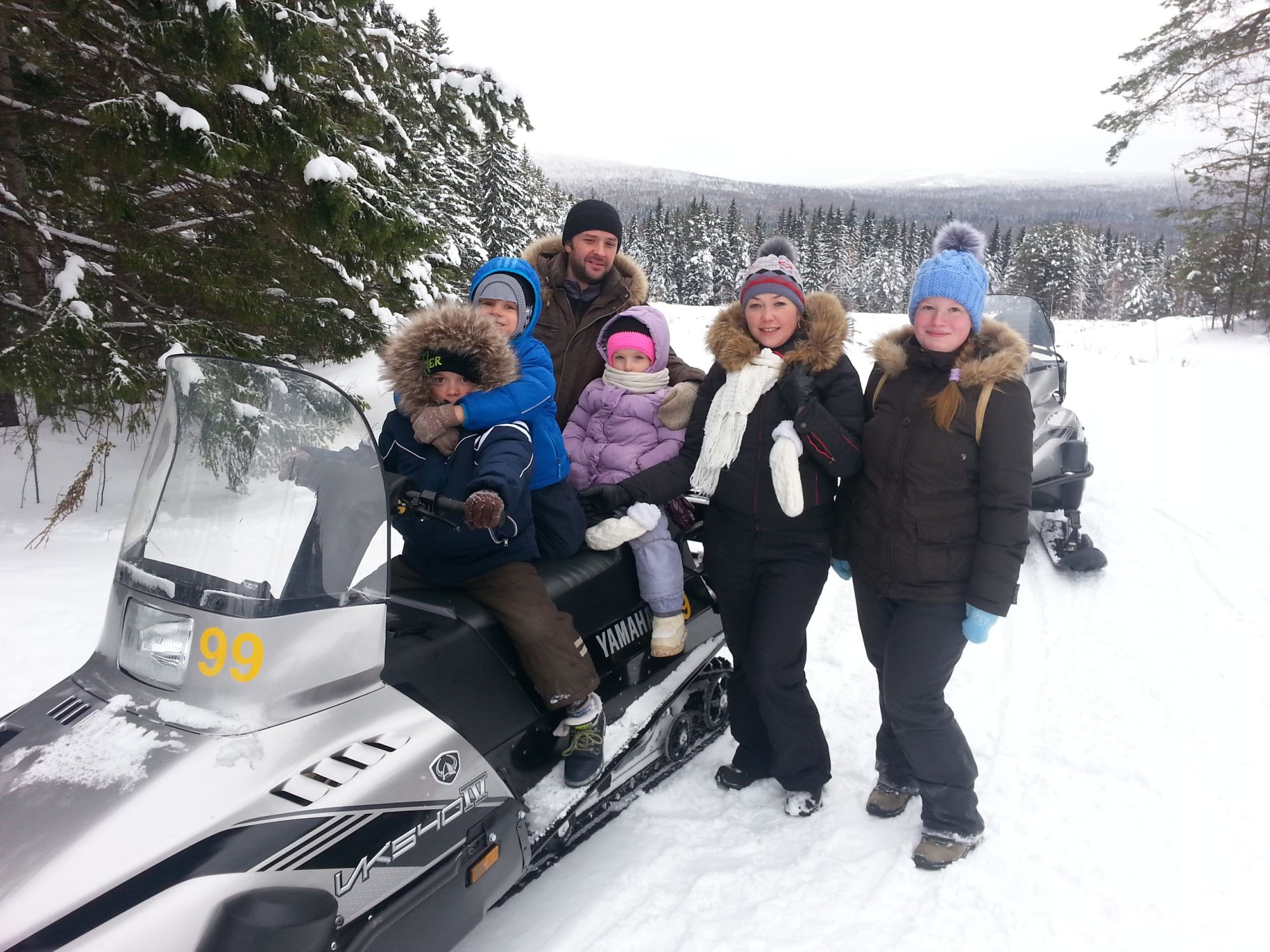 На снегоходе могут ехать двое взрослых + ОДИН ребенок, общей массой не более 180 кг. Группа от 3 человек.